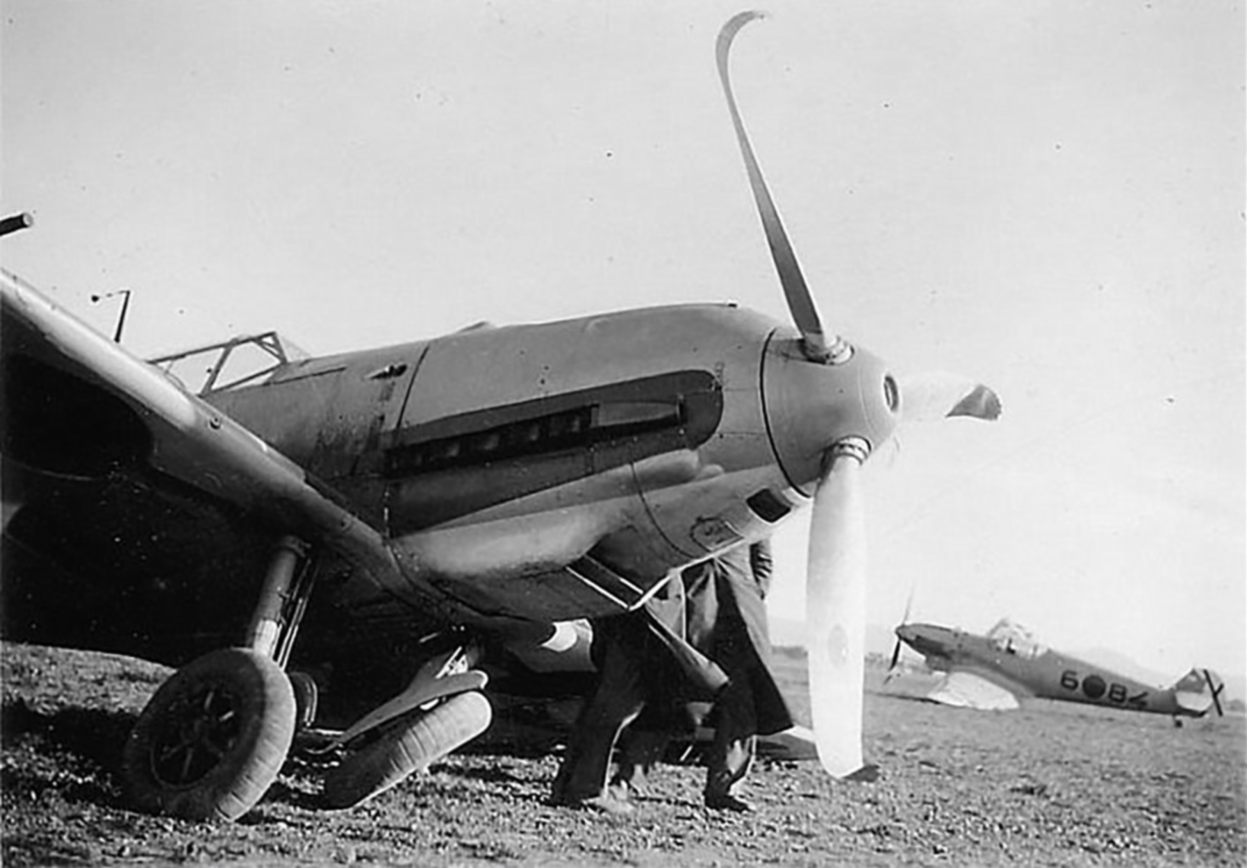 The Messerschmitt Bf 109 is a German World War II fighter aircraft that was the backbone of the Luftwaffe's fighter force. The Bf 109 first saw operational service in 1937 during the Spanish Civil War and was still in service at the dawn of the jet age at the end of World War II in 1945. It was one of the most advanced fighters of the era, including such features as all-metal monocoque construction, a closed canopy, and retractable landing gear. It was powered by a liquid-cooled, inverted-V12 aero engine. From the end of 1941, the Bf 109 was steadily being supplemented by the Focke-Wulf Fw 190. It was commonly called the Me 109, most often by Allied aircrew and among the German aces, even though this was not the official German designation.