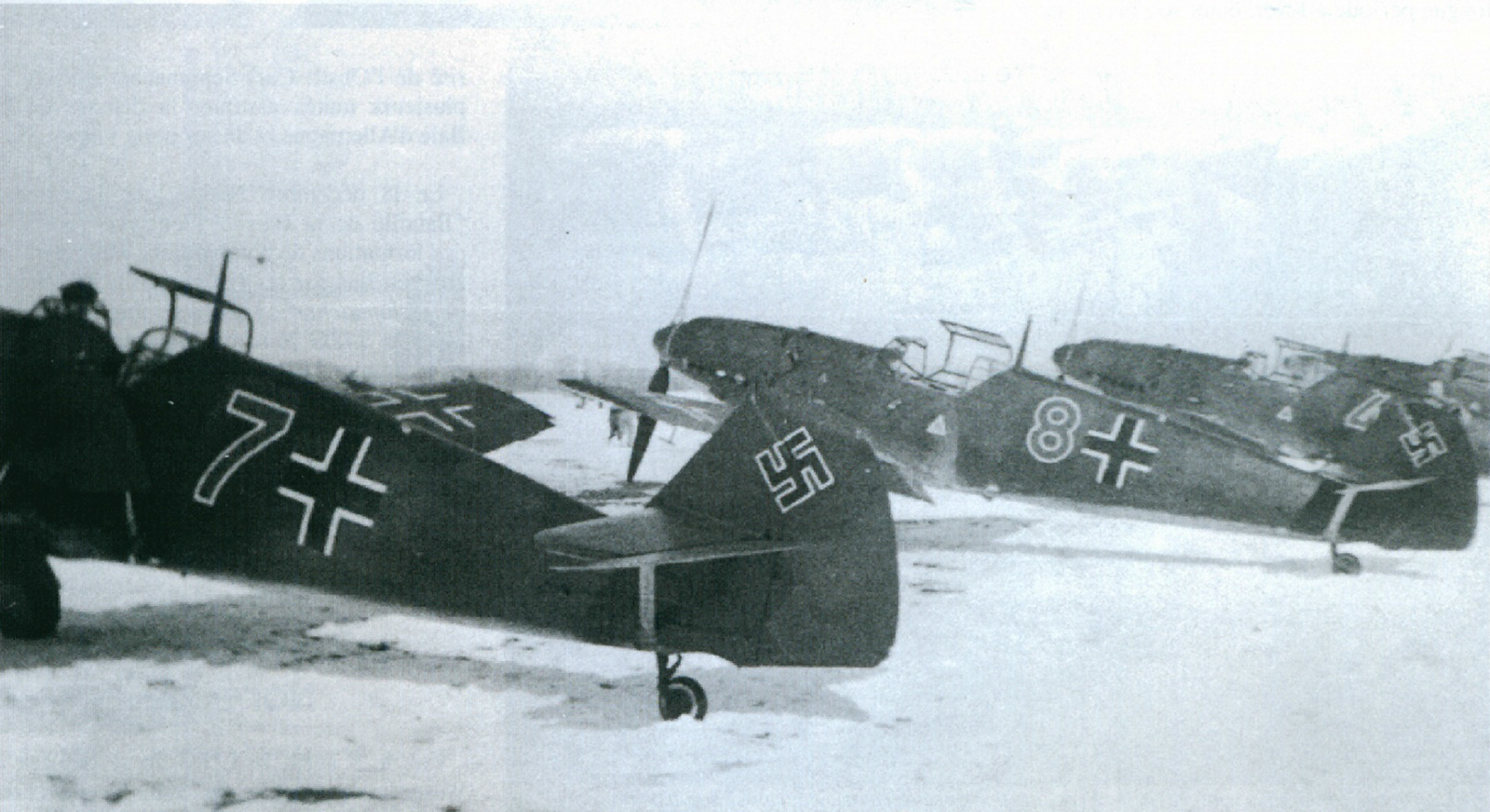 The Messerschmitt Bf 109 is a German World War II fighter aircraft that was the backbone of the Luftwaffe's fighter force. The Bf 109 first saw operational service in 1937 during the Spanish Civil War and was still in service at the dawn of the jet age at the end of World War II in 1945. It was one of the most advanced fighters of the era, including such features as all-metal monocoque construction, a closed canopy, and retractable landing gear. It was powered by a liquid-cooled, inverted-V12 aero engine. From the end of 1941, the Bf 109 was steadily being supplemented by the Focke-Wulf Fw 190. It was commonly called the Me 109, most often by Allied aircrew and among the German aces, even though this was not the official German designation.
