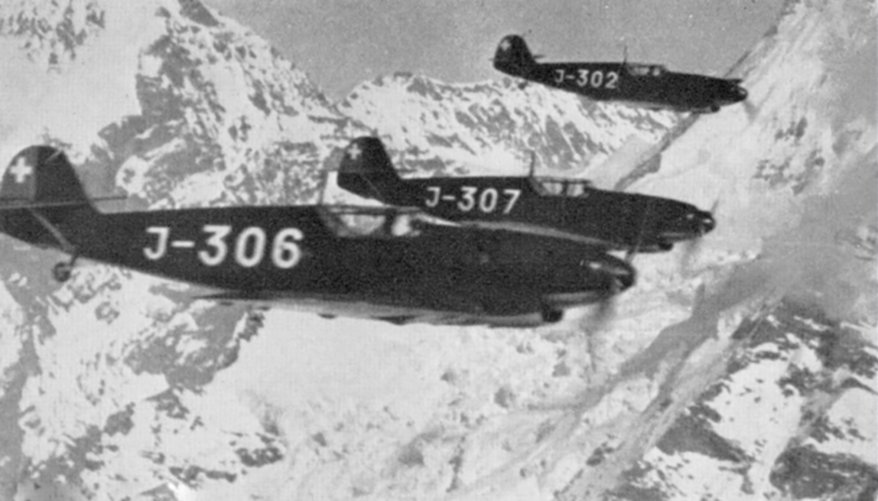 Messerschmitt Bf 109D1 Swiss AF 3.FlKp21 J 306 WNr 2301 in formation with J 307 n J 302 Switzerland 1940-01