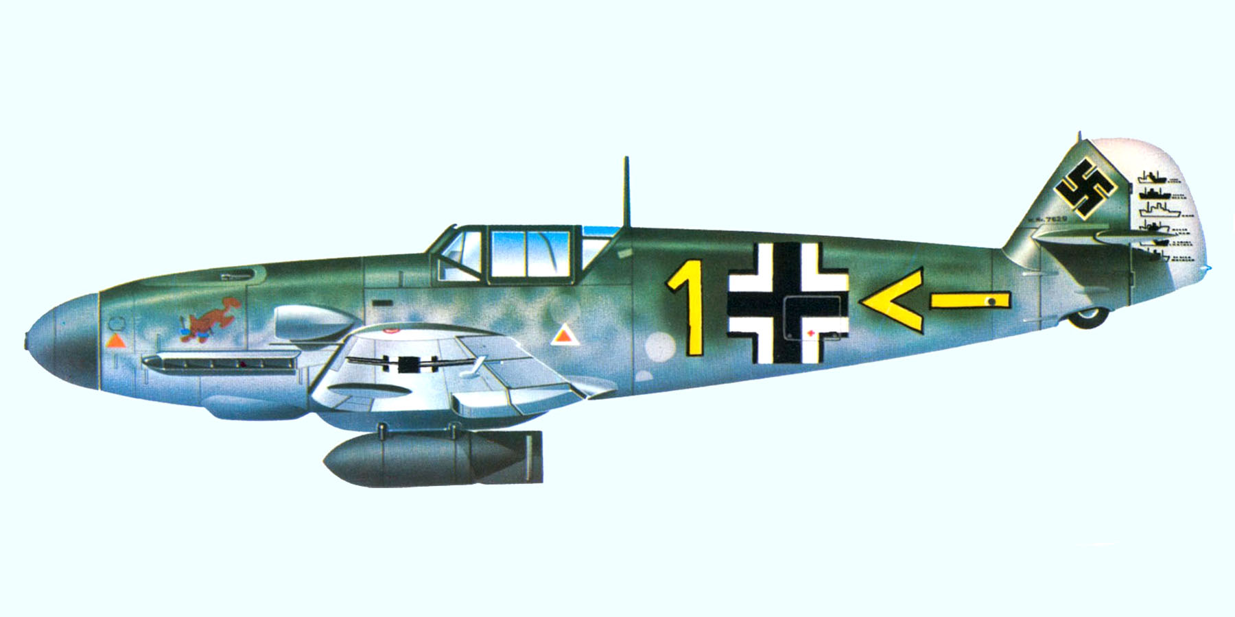 Messerschmitt Bf 109F4B 10.JG2(Jabo) Blue 1 Frank Liesendahl WNr 7629 France 1942 0B