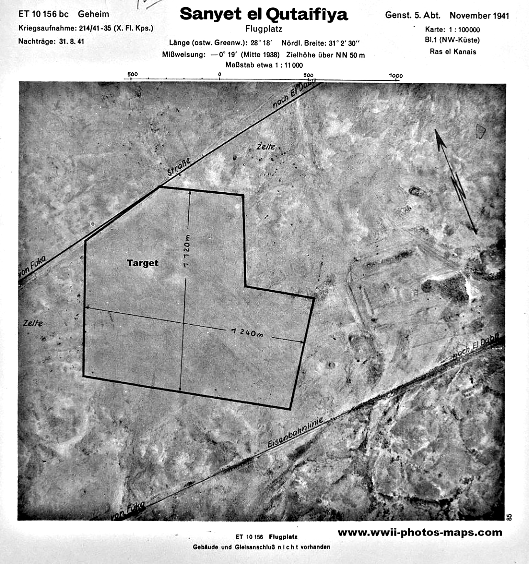 Aerial photo showing WWII aerodrome at Sanyet el Qutaifiya Flugplatz 1941 01
