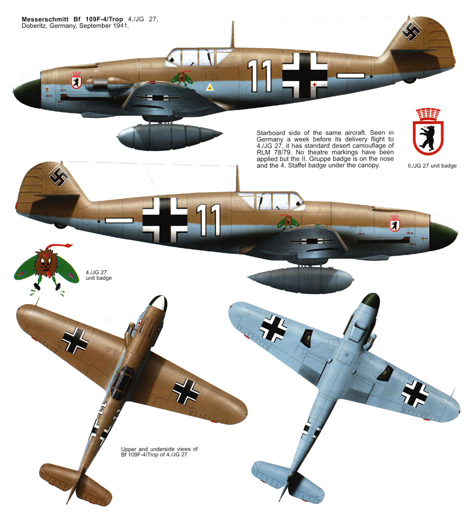Messerschmitt Bf 109F4Trop 4.JG27 White 11 North Africa 1941 0A