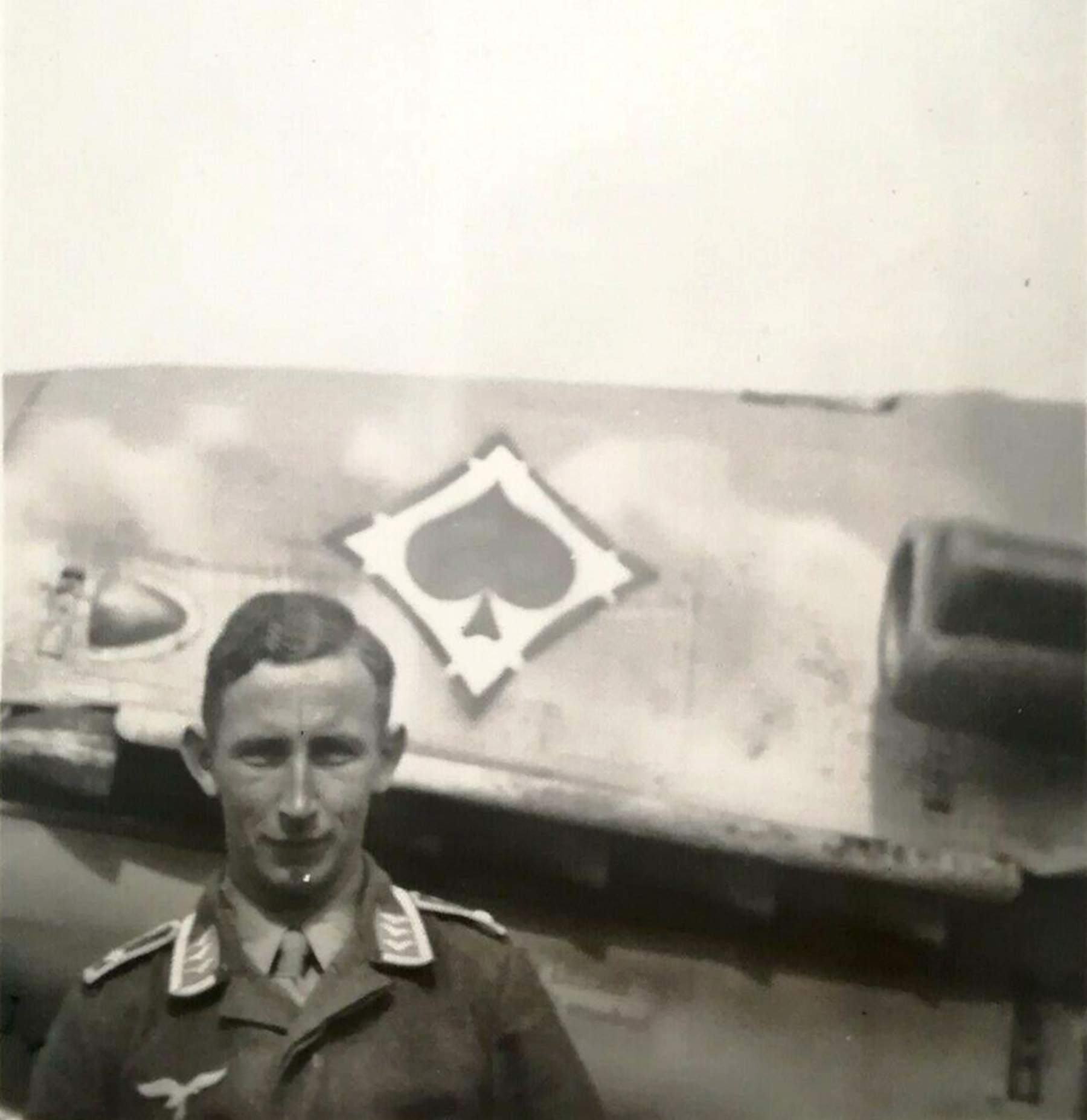 Aircrew Luftwaffe pilot JG53 Wilhelm Manz poses with Bf 109 ebay1