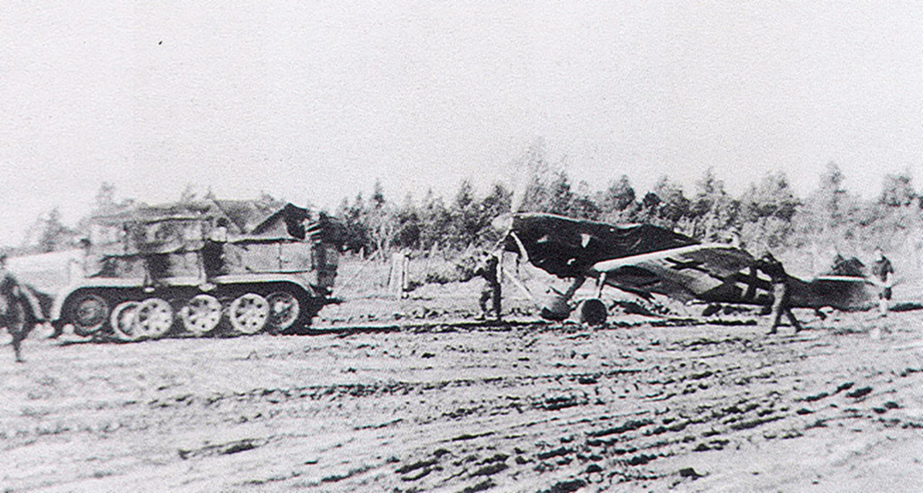 Messerschmitt Bf 109F JG54 being towed by a SdKfz 7 half track Russia 1941 01