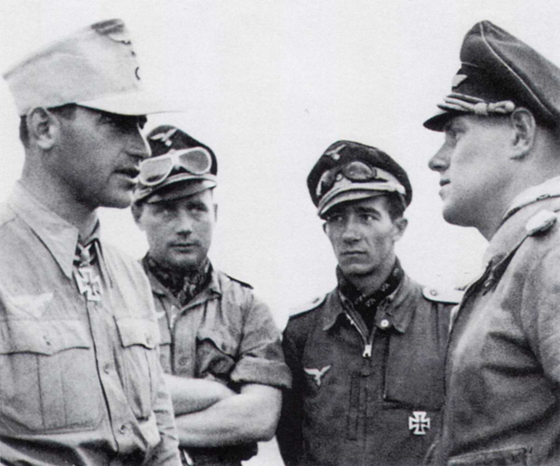 Aircrew Luftwaffe JG77 ace Heinz Bar unknown Lt Armin Kohler and Maj Muncheberg Tunisia 1943 01
