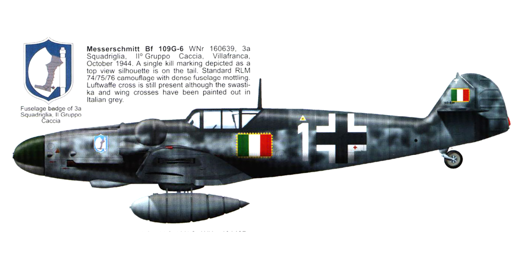 Messerschmitt Bf 109G6R3 ANR 2Gr3Sqn White 1 WNr 160639 Villafranca Italy 1944 0A