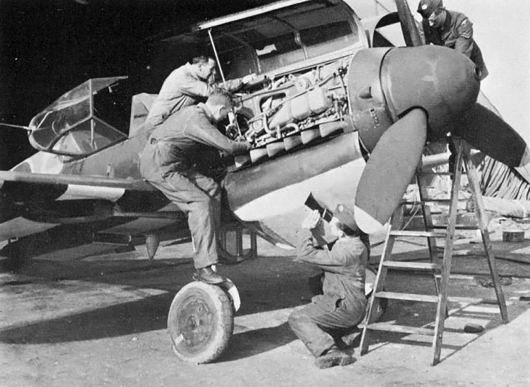 Messerschmitt Bf 109G14 Erla captured RAF VD358 under going maintenance 1944 01
