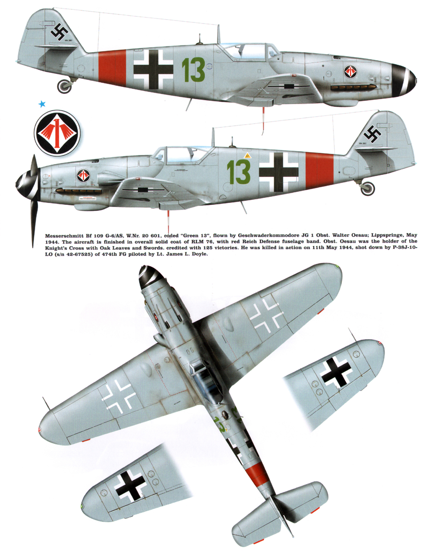 Messerschmitt Bf 109G6AS Erla JG1 Green 13 Walter Oesau WNr 20601 Lippspinge May 1944 0A