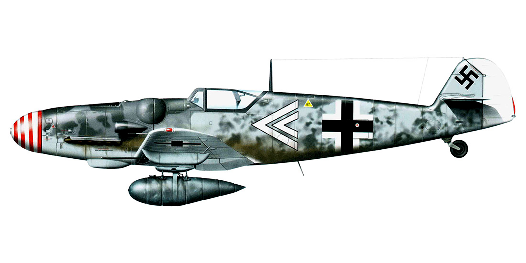 Used in conjunction with the Luftwaffe's other 'star', the Fw 190 which was better-armed and more maneuverable, the Me 109G specialised in high-altitude combat, against the formations of huge Allied four-engined bombers. To increase its performance, various solutions were tried out and installed: more efficient engines of the AS type with power-boost or methanol-water injection giving increased speed for a short time; increasing range by using droptanks; increased firepower (by increasing the nose canon from 20 to 30mm and the machine guns from 13 to 17mm, using rocket launchers or cannon installed in underwing trays), etc.