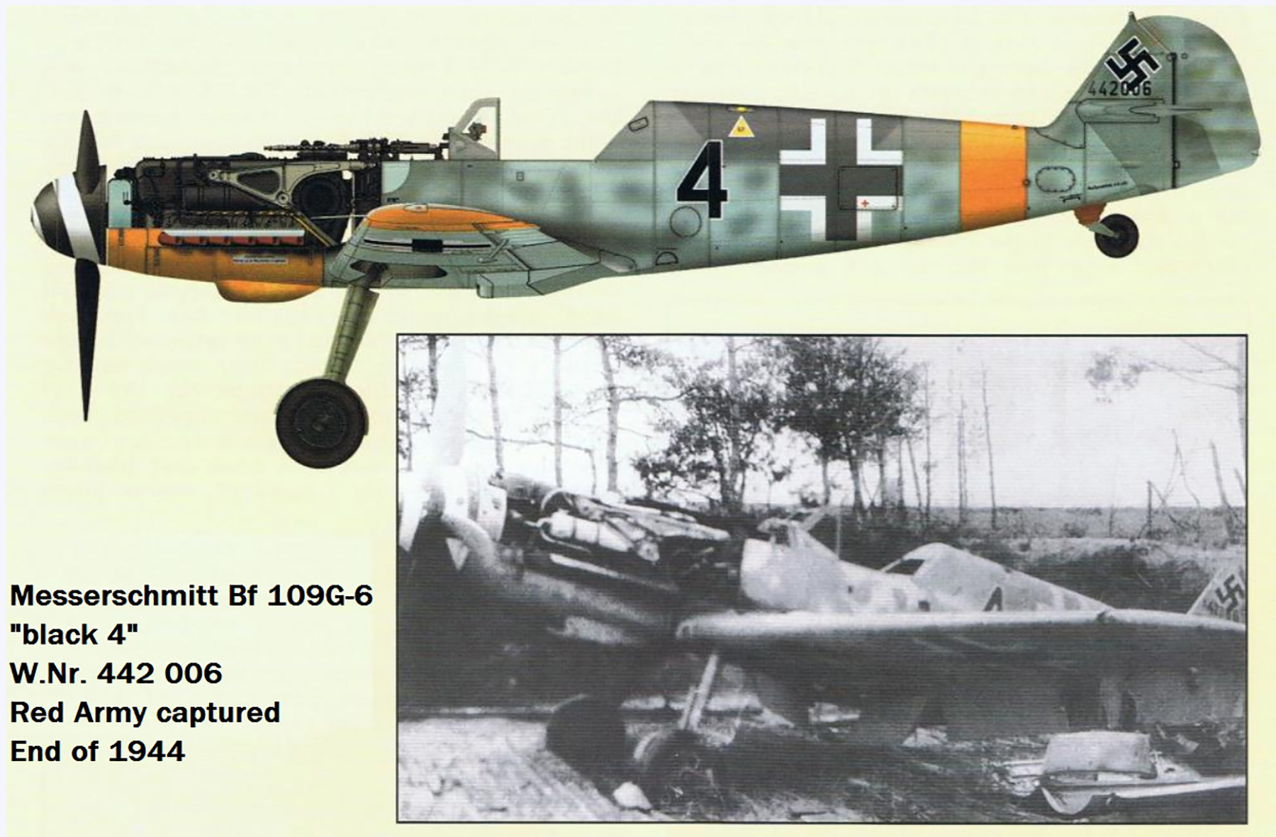 Messerschmitt Bf 109G6 2.JG11 Black 4 WNr 442006 captured by soviet forces late 1944 0A