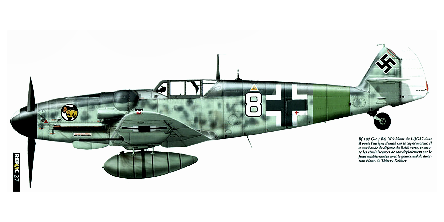 Modifications were carried out to improve the aircraft with its canopy (simplified mountings), its undercarriage (wider diameter wheels, lengthened tailwheel) or its tail (increased rudder surface). Twice the German authorities tried to put some order into this diversity of variants and models, first with the G-14 which was intended to incorporate all the different modifications which had been made to the G-6, then with the G-10 which was to have ensured the transition with the last variant, the 109K.