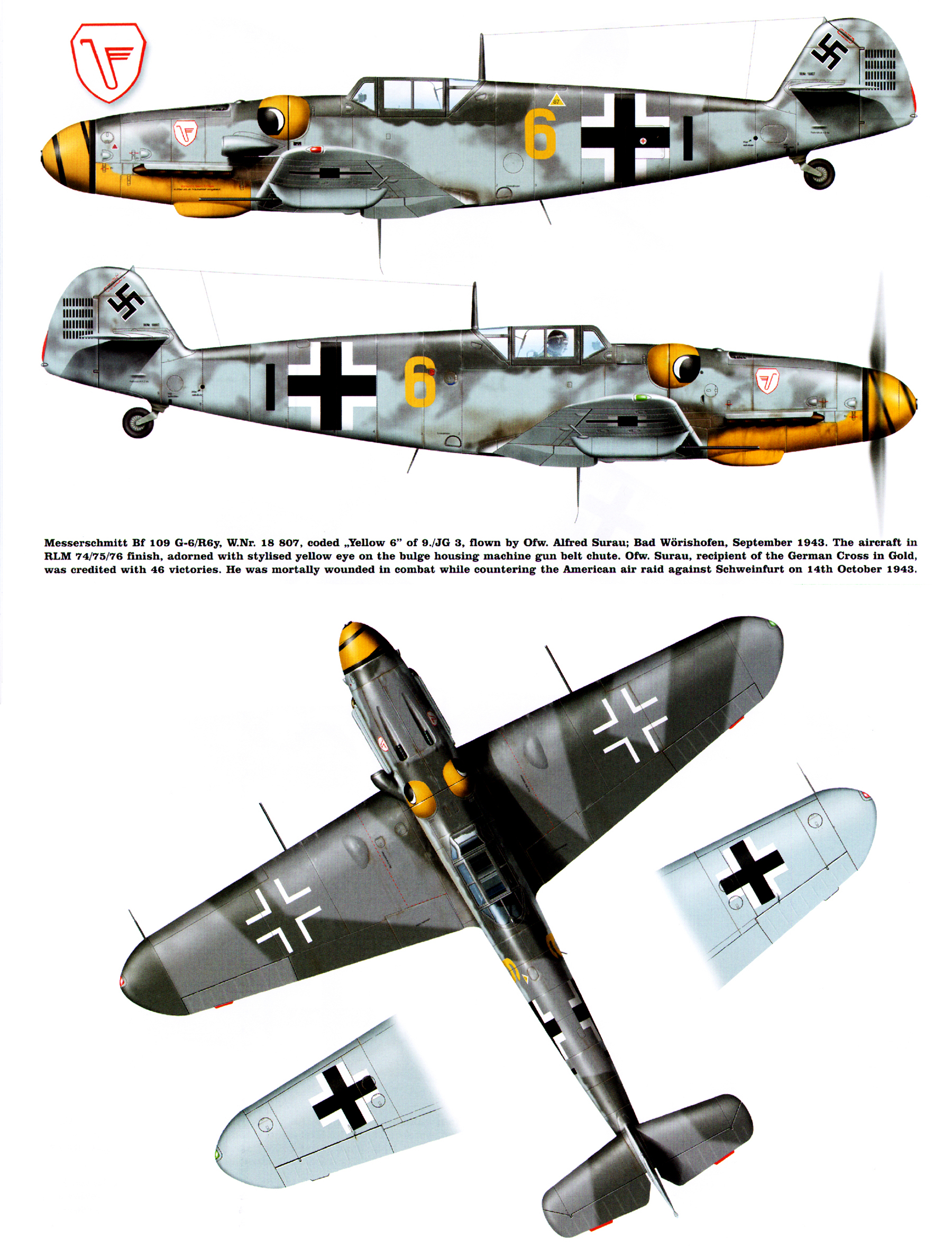 Messerschmitt Bf 109G6R6 9.JG3 Yellow 6 Alfred Surau WNr 18807 Bad Worishofen Bavaria Germany Sep 1943 0A