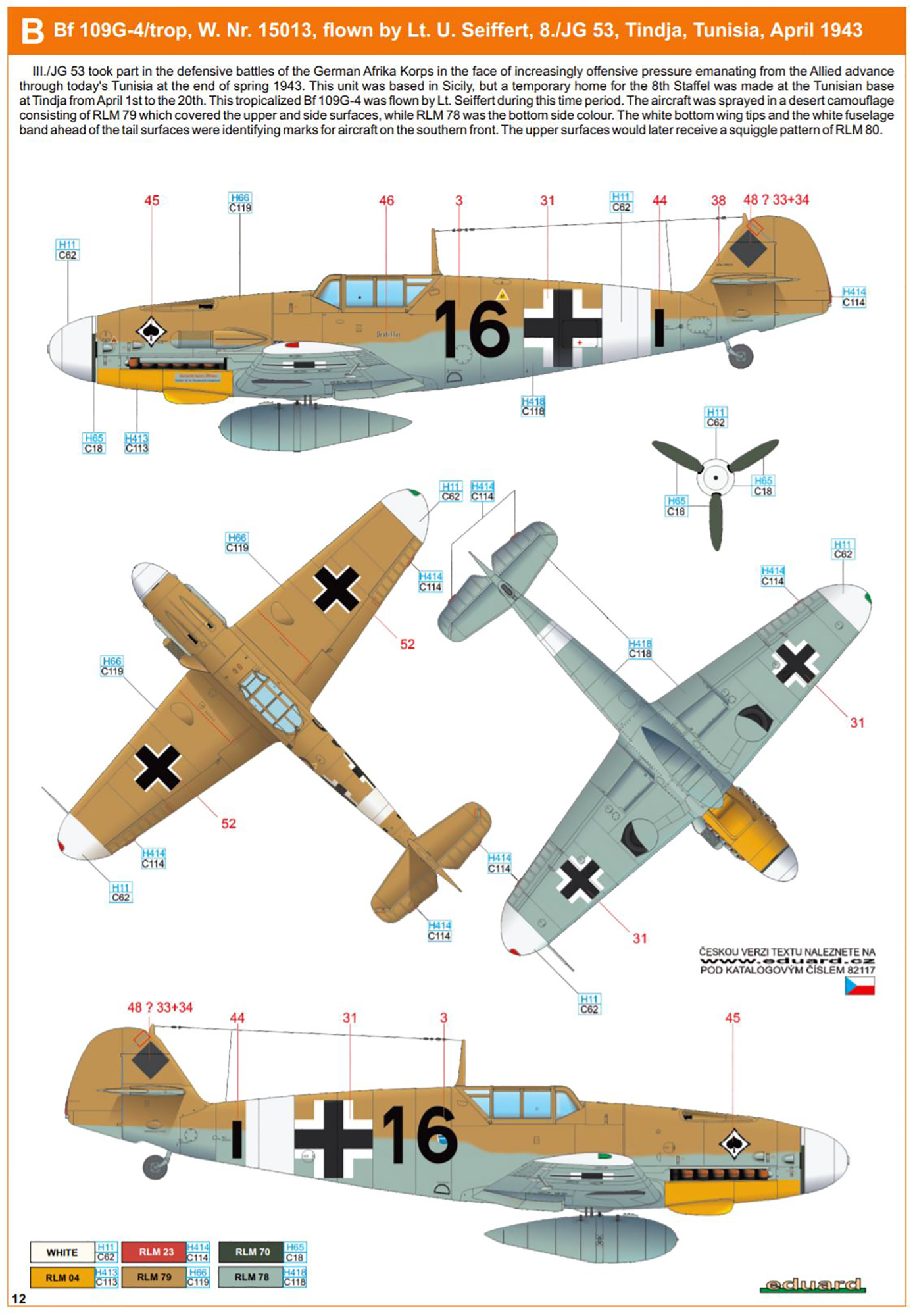 Messerschmitt Bf 109G4Trop 8.JG51 Black 16 Lt U Seiffert WNr 15013 Tindja Tunisia Apr 1943 0B