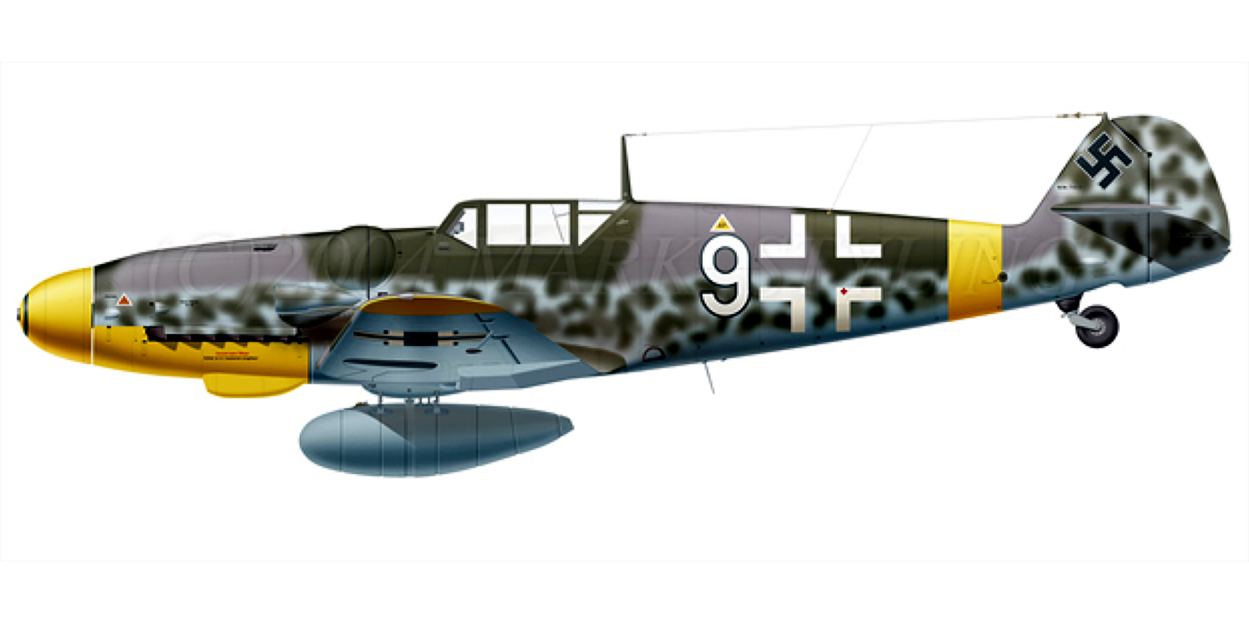 Used in conjunction with the Luftwaffe's other 'star', the Fw 190 which was better-armed and more maneuverable, the Me 109G specialised in high-altitude combat, against the formations of huge Allied four-engined bombers. To increase its performance, various solutions were tried out and installed: more efficient engines of the AS type with power-boost or methanol-water injection giving increased speed for a short time; increasing range by using droptanks; increased firepower (by increasing the nose canon from 20 to 30mm and the machine guns from 13 to 17mm, using rocket launchers or cannon installed in underwing trays), etc.