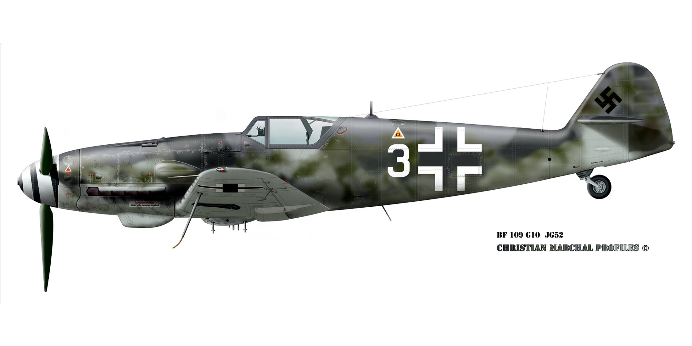 Modifications were carried out to improve the aircraft with its canopy (simplified mountings), its undercarriage (wider diameter wheels, lengthened tailwheel) or its tail (increased rudder surface). Twice the German authorities tried to put some order into this diversity of variants and models, first with the G-14 which was intended to incorporate all the different modifications which had been made to the G-6, then with the G-10 which was to have ensured the transition with the last variant, the 109K.