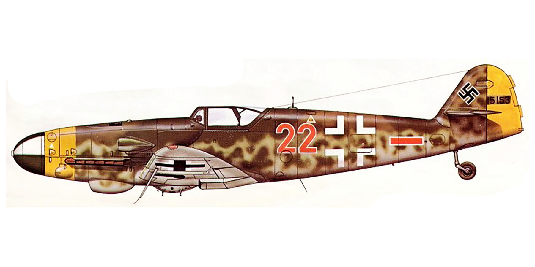Modifications were carried out to improve the aircraft with its canopy (simplified mountings), its undercarriage (wider diameter wheels, lengthened tailwheel) or its tail (increased rudder surface). Twice the German authorities tried to put some order into this diversity of variants and models, first with the G-14 which was intended to incorporate all the different modifications which had been made to the G-6, then with the G-10 which was to have ensured the transition with the last variant, the 109K.
