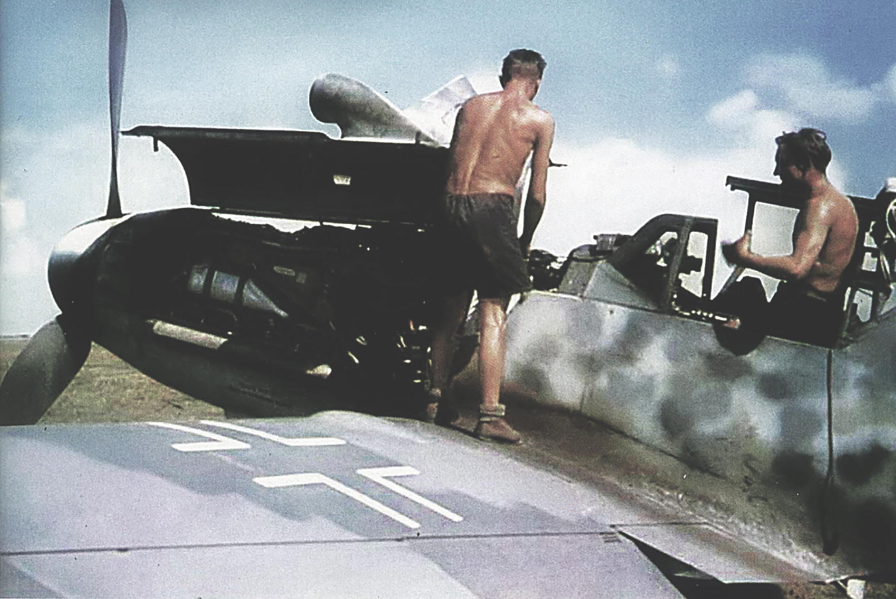 Used in conjunction with the Luftwaffe's other 'star', the Fw 190 which was better-armed and more maneuverable, the Me 109G specialised in high-altitude combat, against the formations of huge Allied four-engined bombers. To increase its performance, various solutions were tried out and installed: more efficient engines of the AS type with power-boost or methanol-water injection giving increased speed for a short time; increasing range by using droptanks; increased firepower (by increasing the nose canon from 20 to 30mm and the machine guns from 13 to 17mm, using rocket launchers or cannon installed in underwing trays), etc.