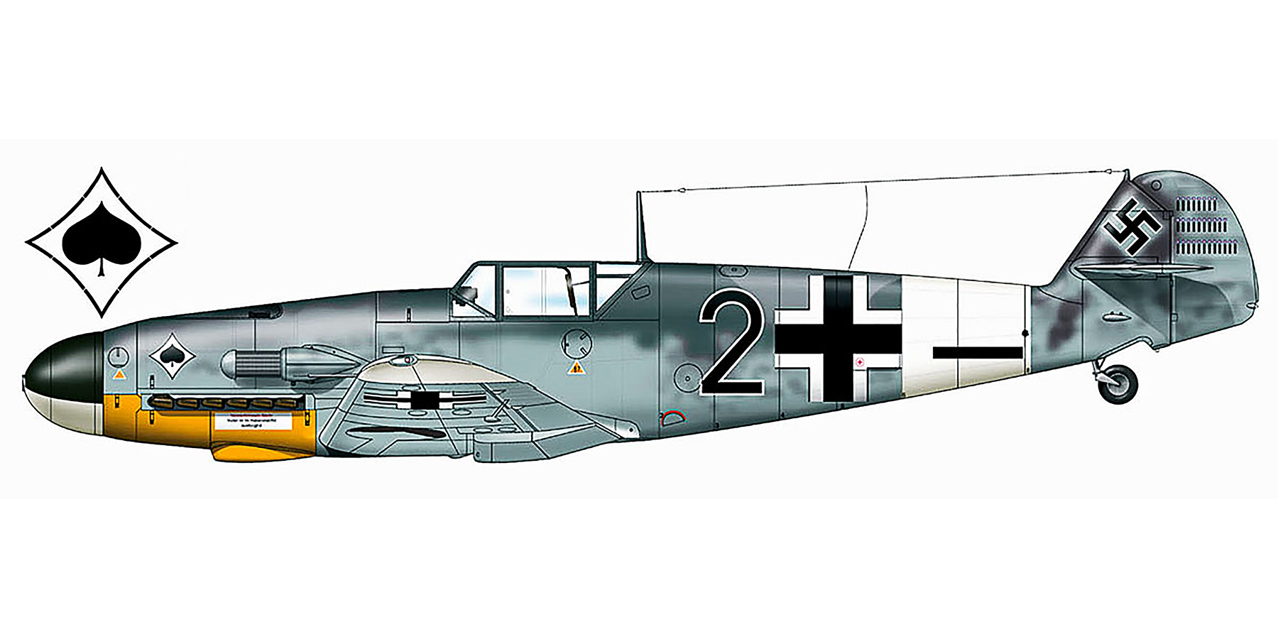 Messerschmitt Bf 109F4Trop 5.JG53 Black 2 Herbert Rollwage Sicily Aug 1942 0A