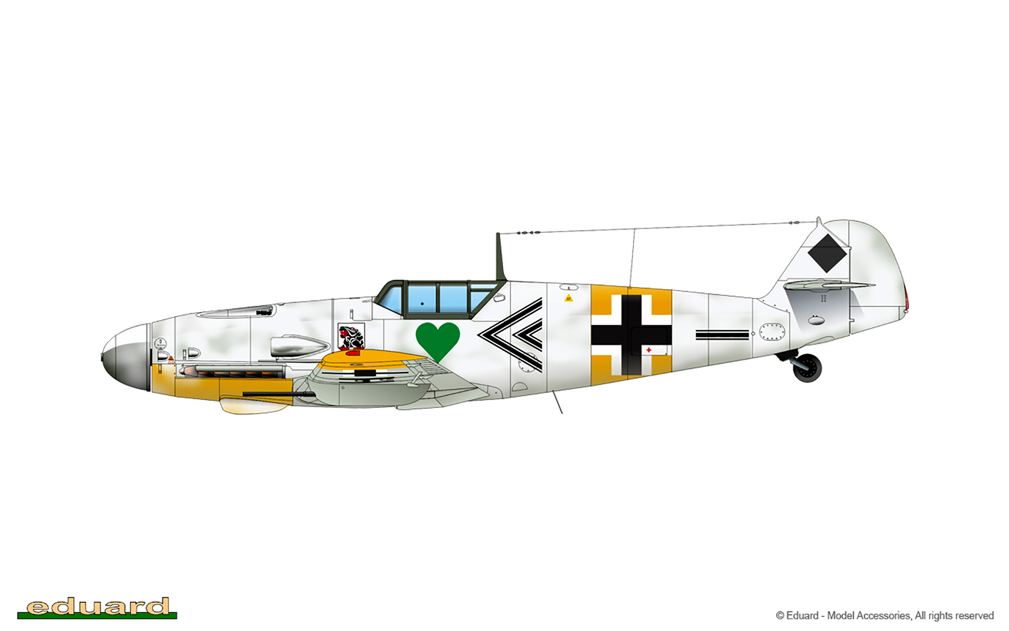 Used in conjunction with the Luftwaffe's other 'star', the Fw 190 which was better-armed and more maneuverable, the Me 109G specialised in high-altitude combat, against the formations of huge Allied four-engined bombers. To increase its performance, various solutions were tried out and installed: more efficient engines of the AS type with power-boost or methanol-water injection giving increased speed for a short time; increasing range by using droptanks; increased firepower (by increasing the nose canon from 20 to 30mm and the machine guns from 13 to 17mm, using rocket launchers or cannon installed in underwing trays), etc.