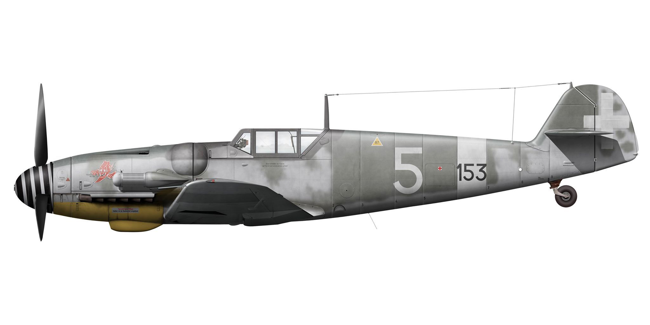 Modifications were carried out to improve the aircraft with its canopy (simplified mountings), its undercarriage (wider diameter wheels, lengthened tailwheel) or its tail (increased rudder surface). Twice the German authorities tried to put some order into this diversity of variants and models, first with the G-14 which was intended to incorporate all the different modifications which had been made to the G-6, then with the G-10 which was to have ensured the transition with the last variant, the 109K.