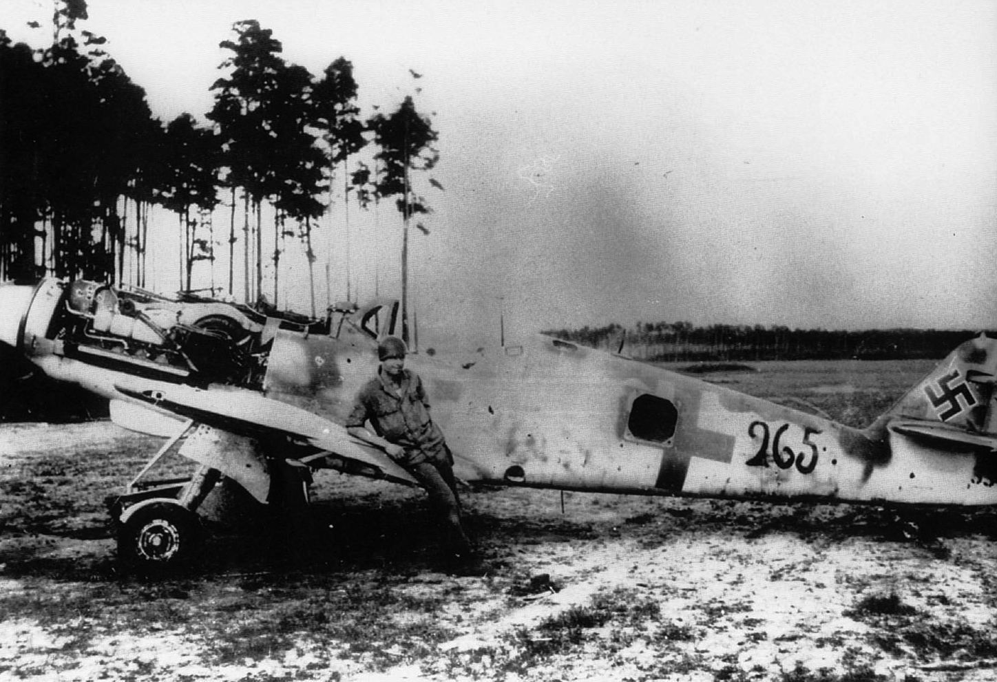 The Messerschmitt Bf 109 is a German World War II fighter aircraft that was the backbone of the Luftwaffe's fighter force. The Bf 109 first saw operational service in 1937 during the Spanish Civil War and was still in service at the dawn of the jet age at the end of World War II in 1945. It was one of the most advanced fighters of the era, including such features as all-metal monocoque construction, a closed canopy, and retractable landing gear. It was powered by a liquid-cooled, inverted-V12 aero engine. From the end of 1941, the Bf 109 was steadily being supplemented by the Focke-Wulf Fw 190. It was commonly called the Me 109, most often by Allied aircrew and among the German aces, even though this was not the official German designation.