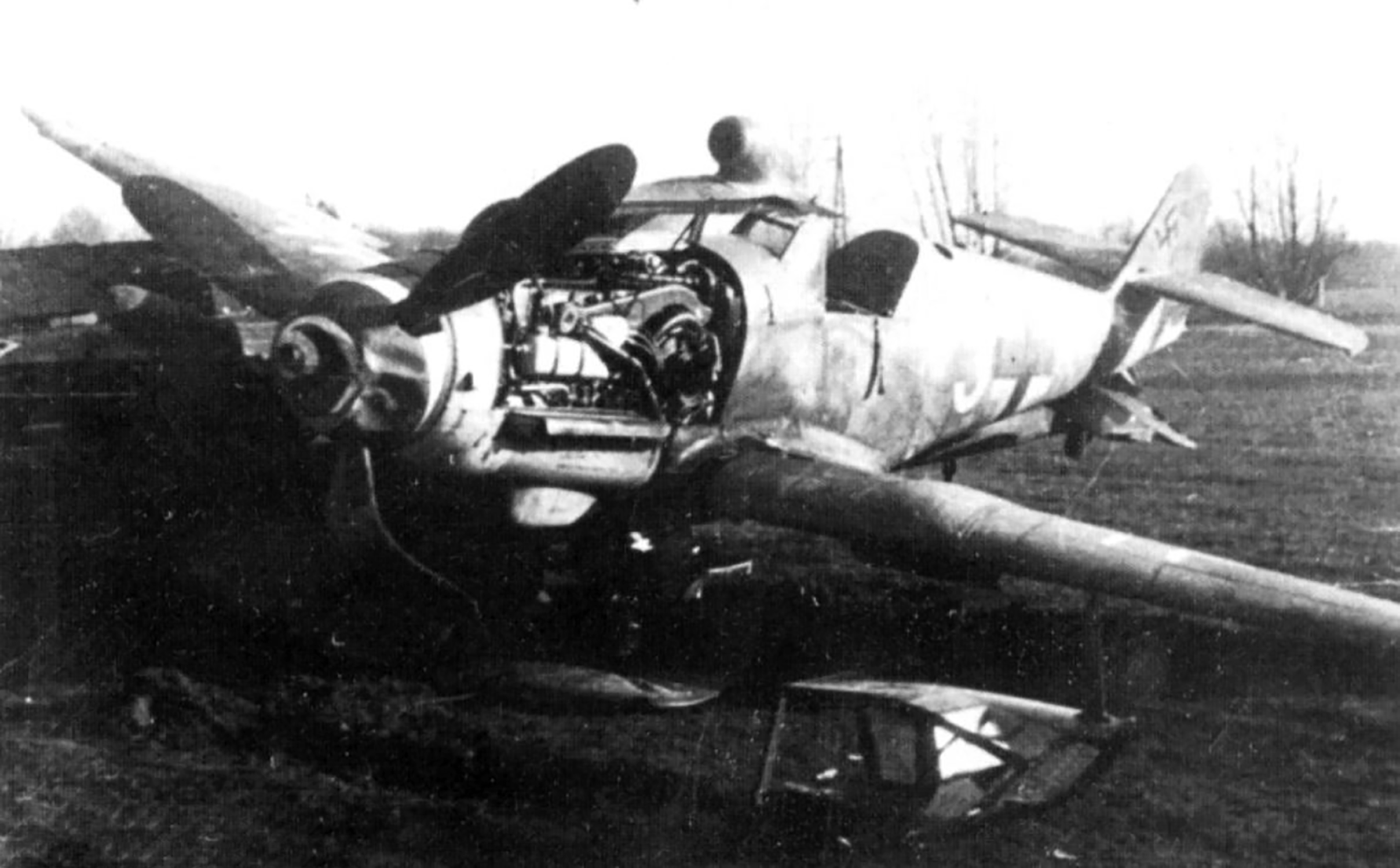 Messerschmitt Bf 109K4 1.JG77 White 3 ldg accident with Wolfgang Schulze Neuruppin 1945 01
