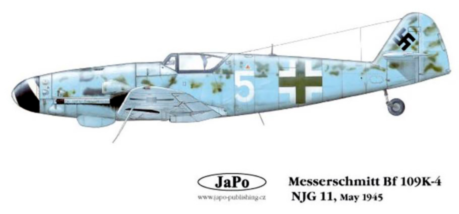 Messerschmitt Bf 109K4 1.NJG11 White 5 Leck Nordfriesland Germany May 1945 0B