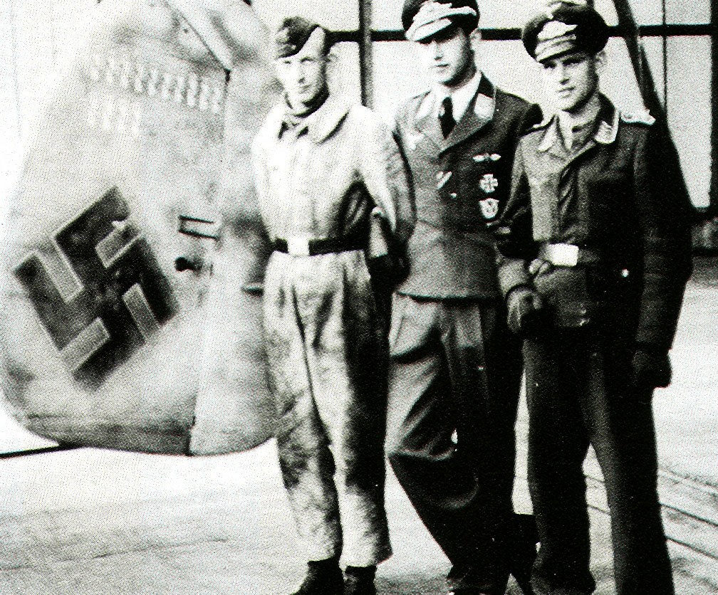 Aircrew Luftwaffe pilot Wilhelm Johnen with Paul Mahle 1944 01