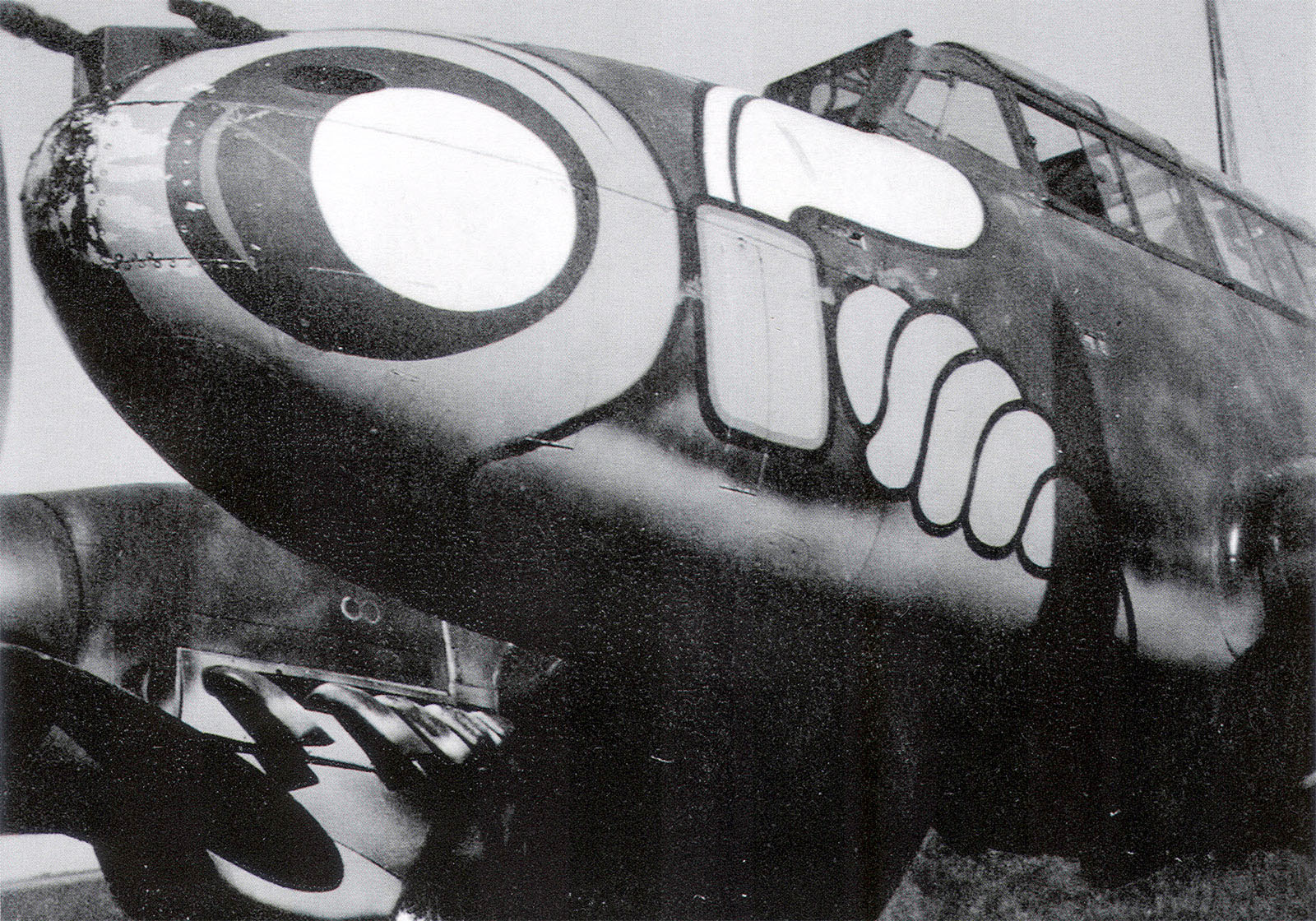 Messerschmitt Bf 110E Zerstorer ZG1 waspe emblem in black and white 01