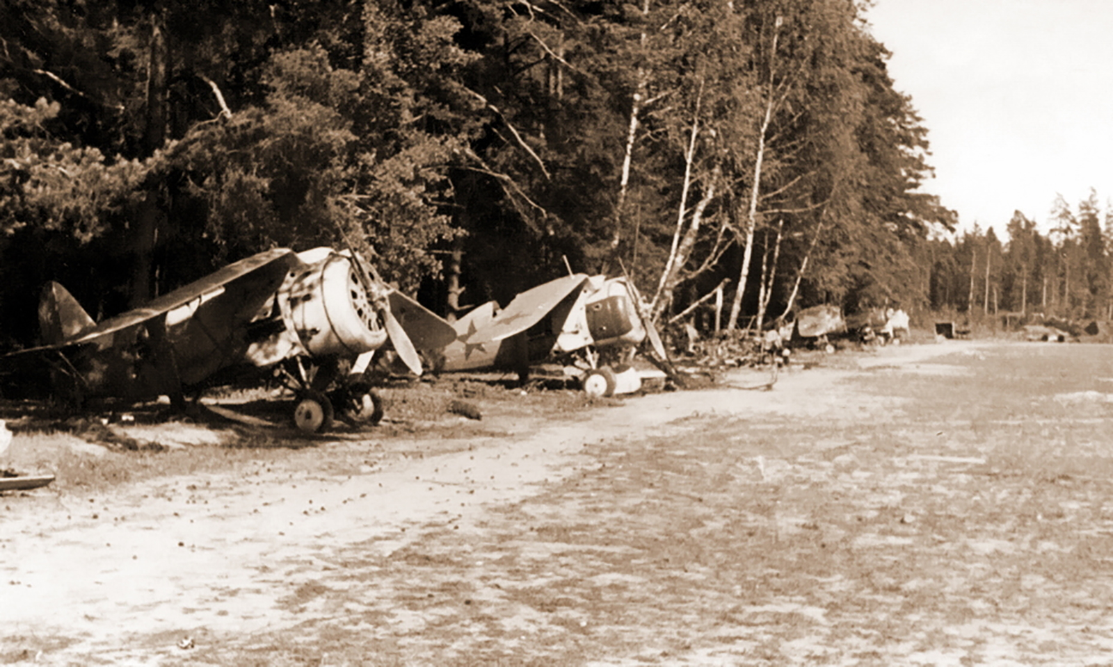 Soviet I 153 127IAP aircraft destroyed during Skidel airfield raid 22nd Jun 1941-01