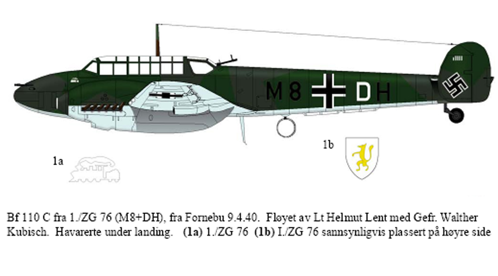 Messerschmitt Bf 110C Zerstorer 1.ZG76 M8+DH Helmut Lent North Sea 1940 0C