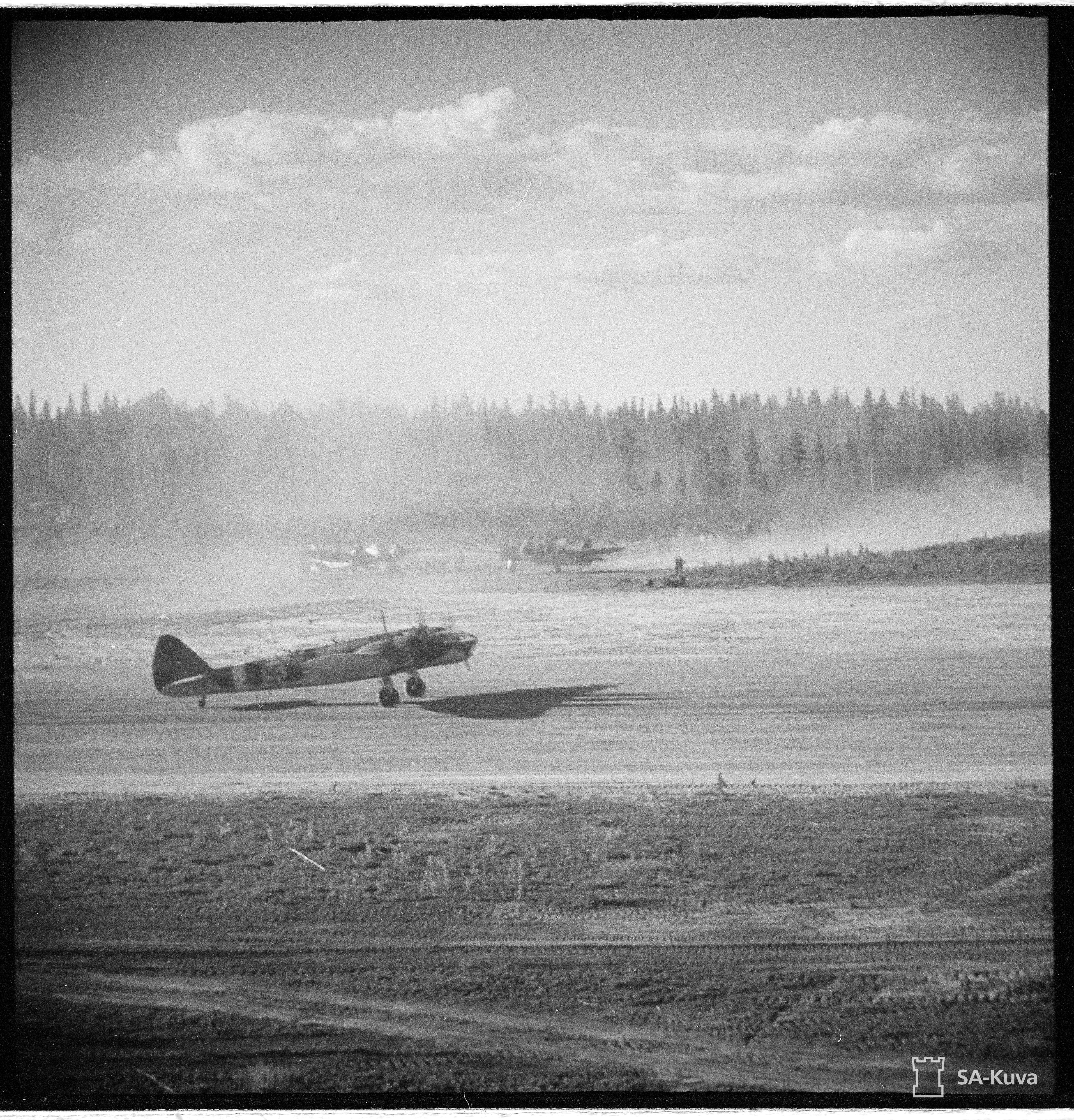 Blenheim IV FAF PLeLv48 taking off from dusty Onttola 14th Jul 1944 06