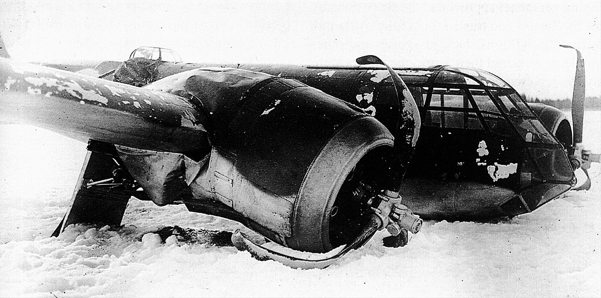 Bristol Blenheim I FAF LeLv42 BL115 had a malfunctioned ski which caused the crash at Vartsila Feb 1943 01