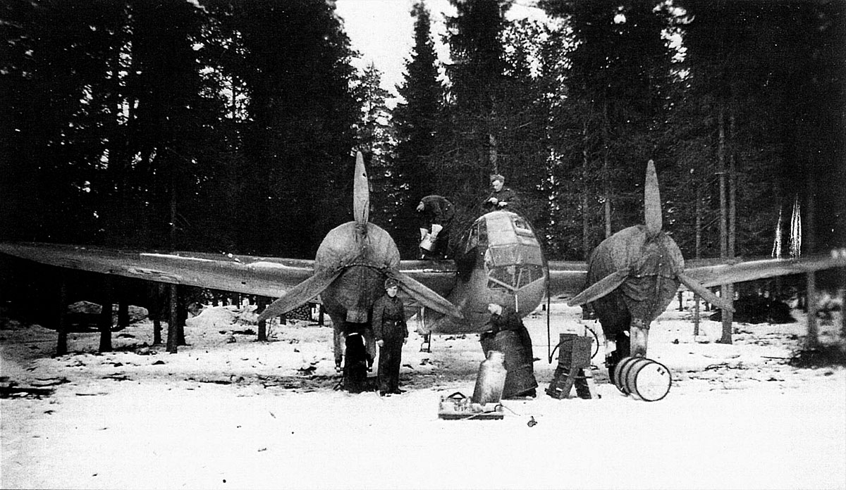 Bristol Blenheim I FAF LeLv42 personnel refueling the warmed up engines of a fronzen BlenheimI Vartsila 1942 43 01