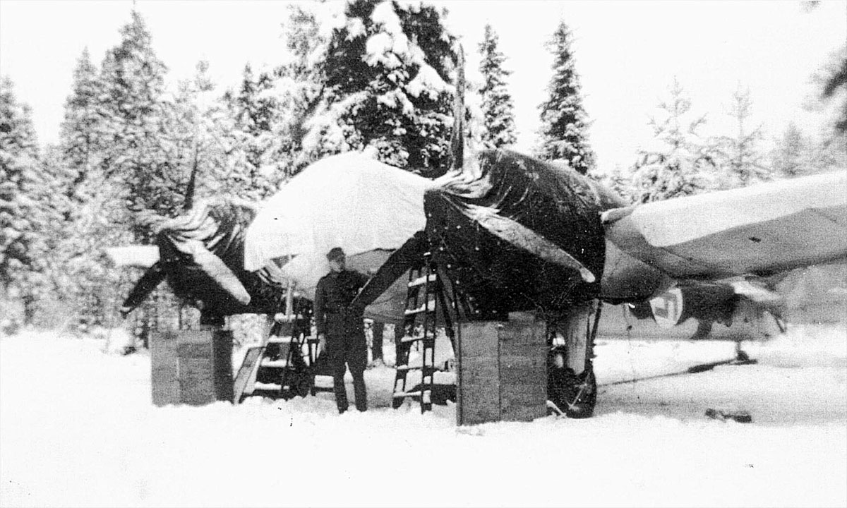 Bristol Blenheim I FAF LeLv42 personnel warming up the engines of a fronzen BlenheimI Vartsila Finland 1942 43 01
