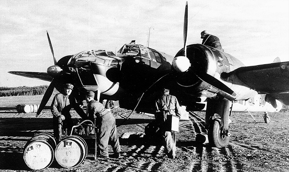 Bristol Blenheim IV FAF LeLv42 BL199 was the 2nd lead plane flown by Erkki Palosuo seen here being refueled at Onttola 01