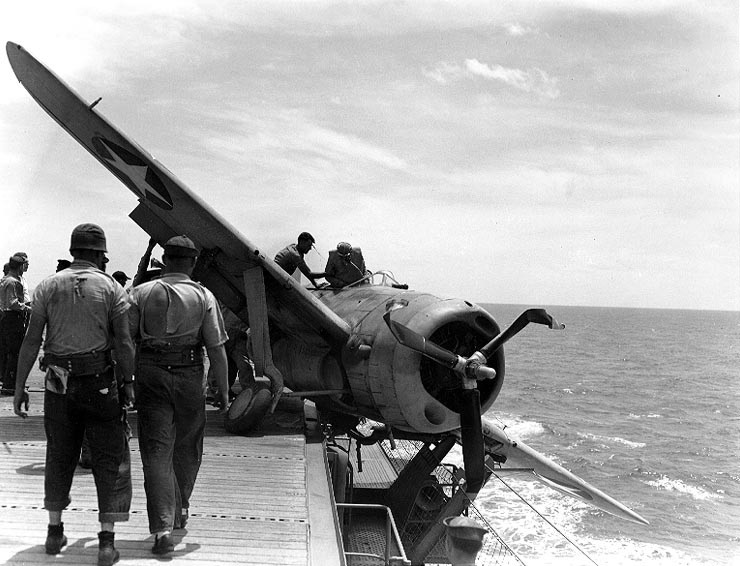 F2A 3 VMF 211 landing gear failure USS Long Island off Palmyra Atoll 25th July 1942 02