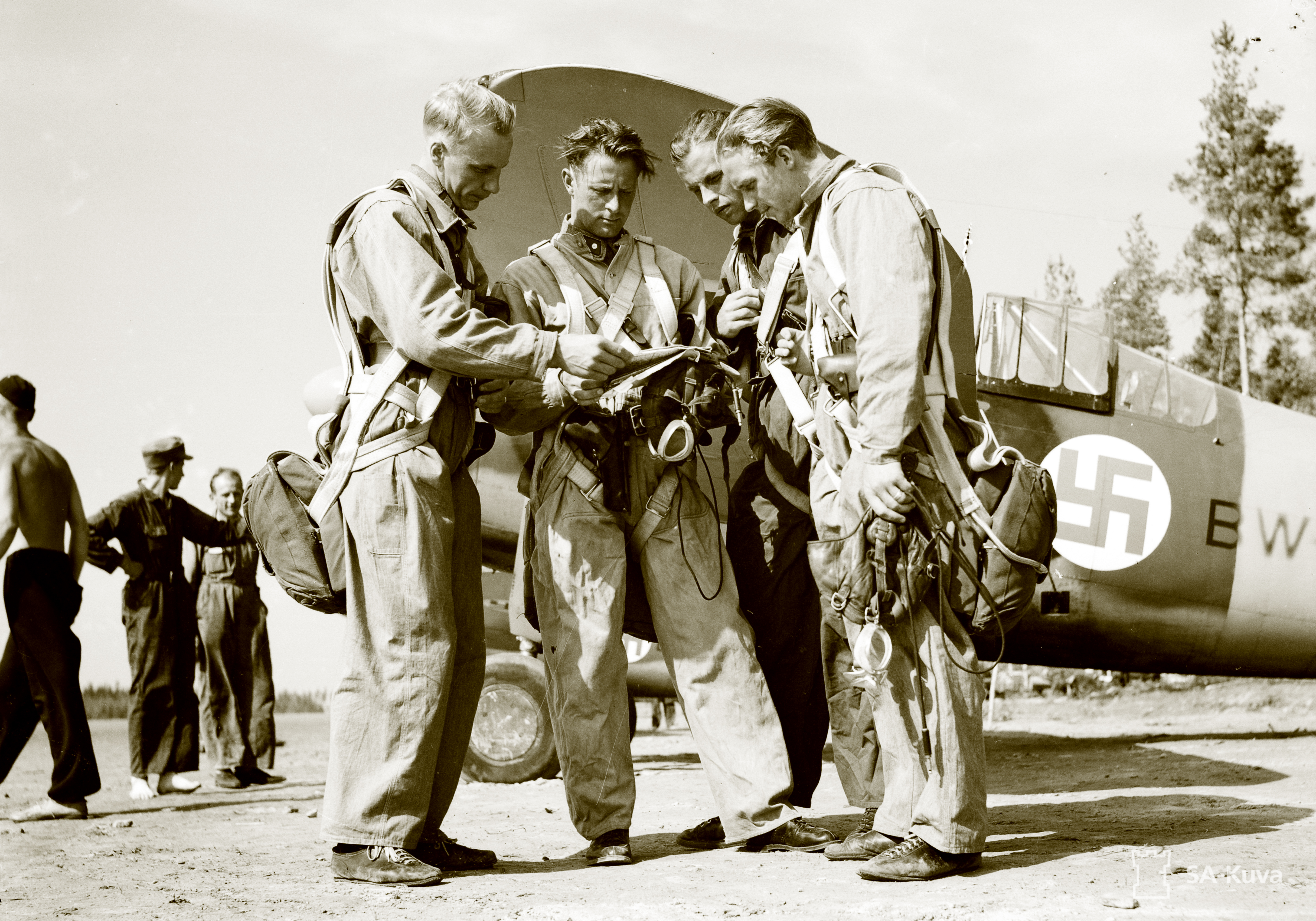 Brewster Buffalo MkI FAF 4.LeLv24 with Lt Karhunen giving instructions at Rantasalmi 10th Jul 1941 24435
