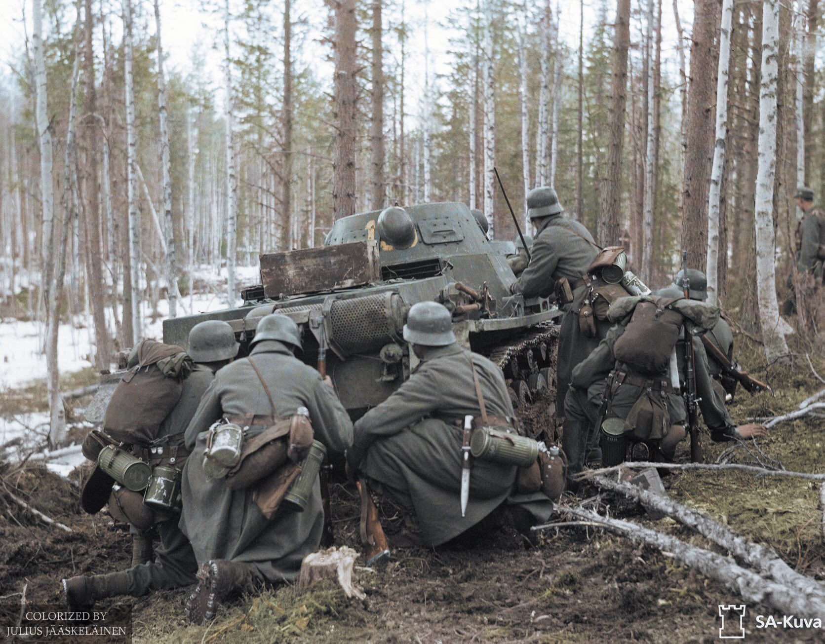 German Wehrmacht Gebirgsjagers with Panzer II tanks during their attack near Louhi heading to Jelettijarvi 15th May 1942 88778c