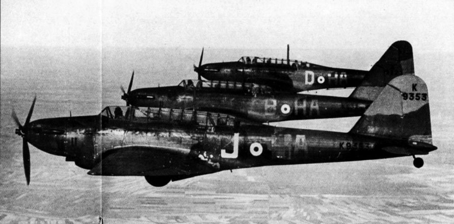 Fairey Battle I RAF 218Sqn HAJ K9353 with HA B K9324 and HA D K9325 over France 1940 01