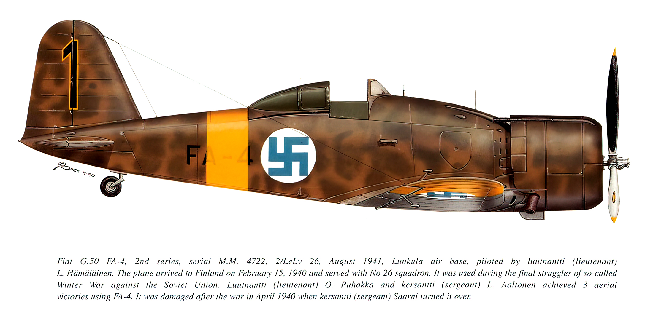 Fiat G50 Freccia FAF 2.LeLv26 FA4 MM4722 Lauri Hamalainen Lunkula AB Sep 1941 Revi 28 P26