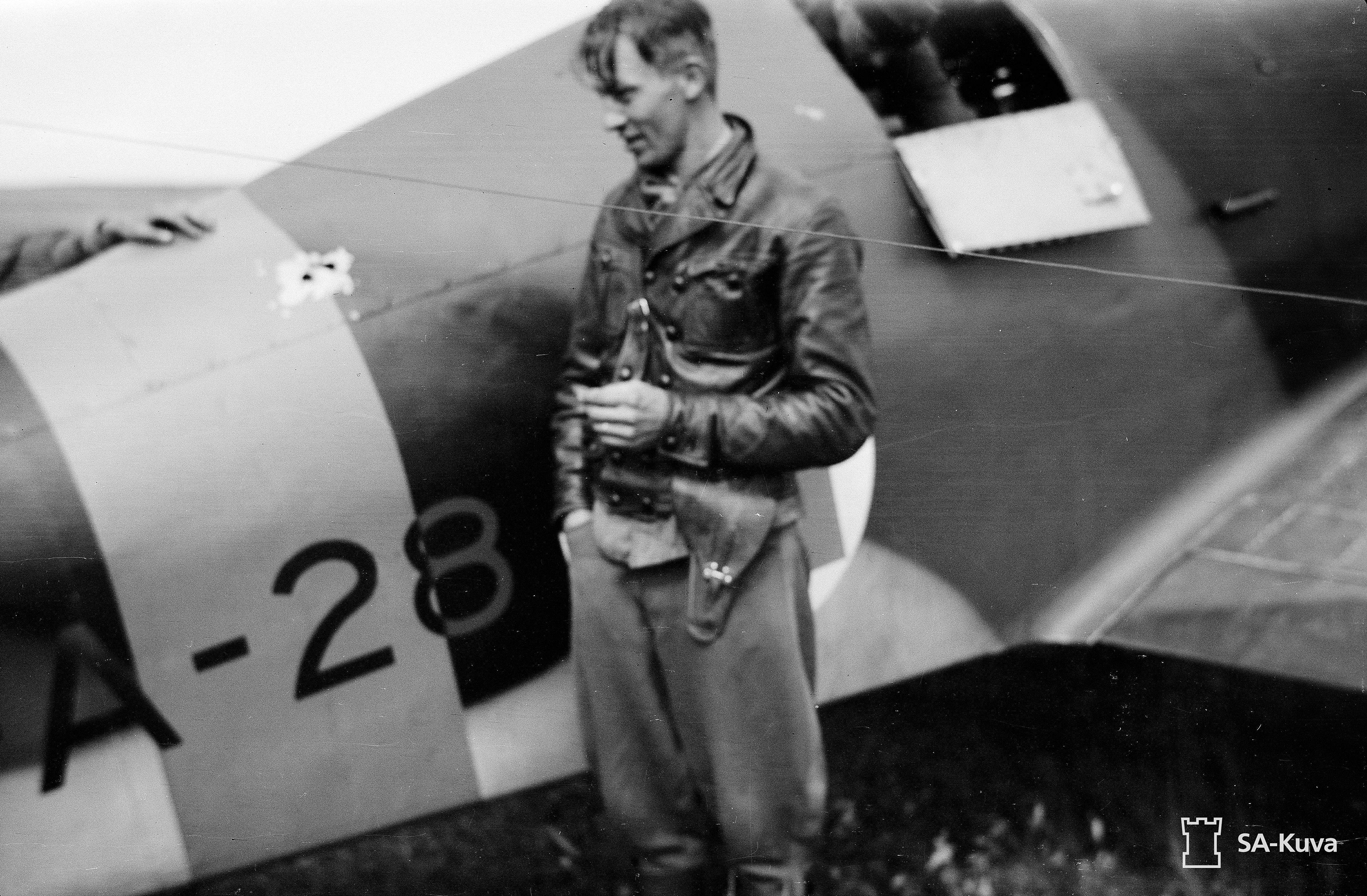 Fiat G50 Freccia FAF FA28 pilot inspecting bullet damage at Lunkula 10th Aug 1941 36699