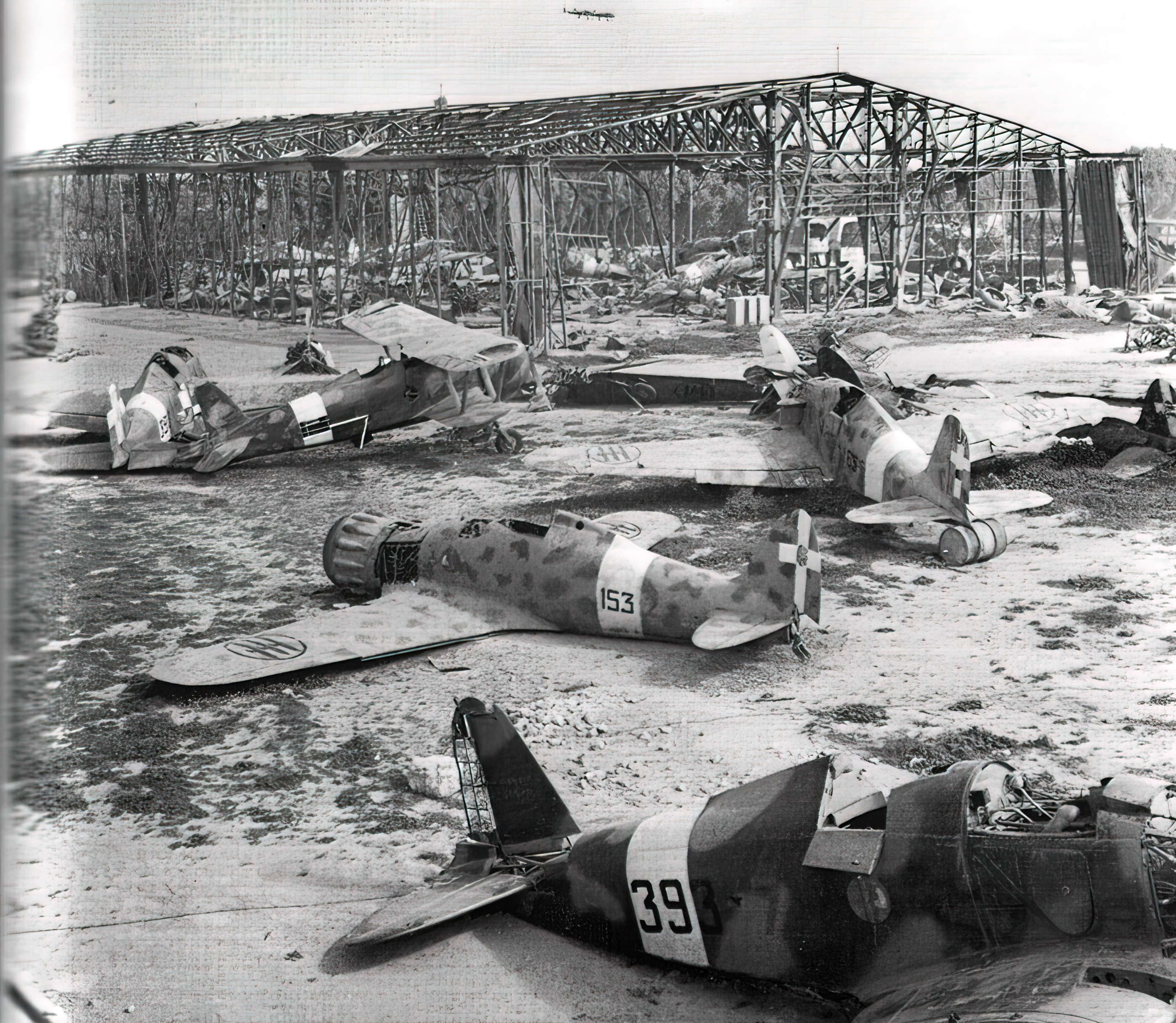 Fiat G50 Freccia abandoned RA aircraft at Salerno with 160 Gruppo 393 Squadriglia 393 7 Sep 1943 IWM 01