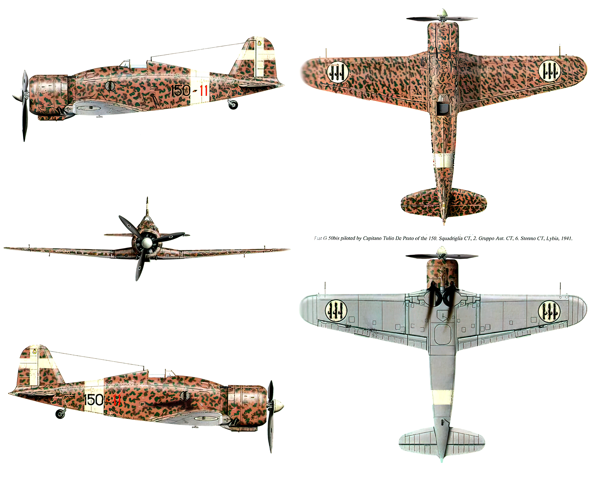 Fiat G50 Freccia 51 Stormo CT 2 Gruppo 150 Squadriglia 150 11 MM6393 Tullio De Prato Derna Libya Mar 1941 0A