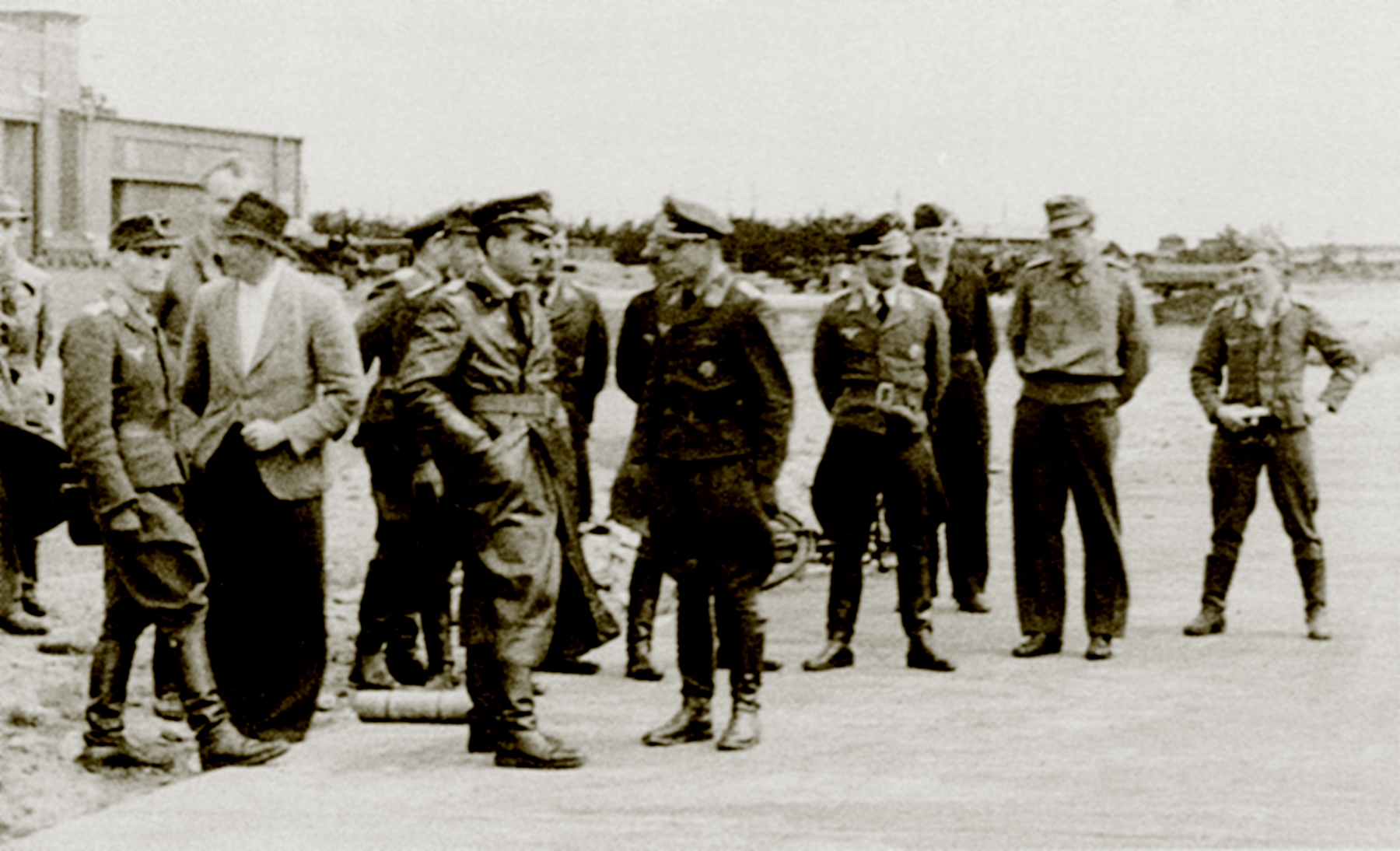 Aircrew Luftwaffe pilot Ekdo 25 Horst Geyer and Adolf Galland Parchim 1944 01