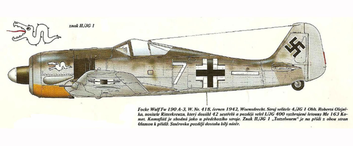 Focke Wulf Fw 190A3 4.JG1 White 7 Robert Olejnik WNr 418 Woensdrecht Netherlands June 1942-0C