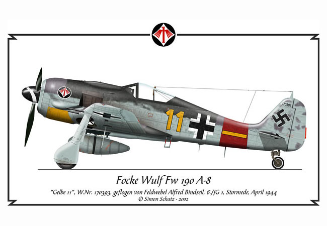 Focke Wulf Fw 190A8 6.JG1 Yellow 11 Alfred Bindseil WNr 170393 Listen AF 1944 0A