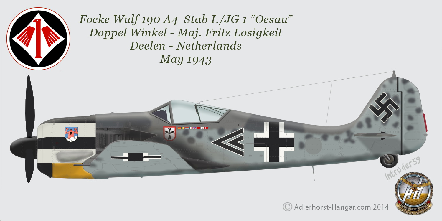 Focke Wulf Fw 190A4 Stab I.JG1 Doppel Winkel Fritz Losigkeit Deelen Netherlands May 1943-0A