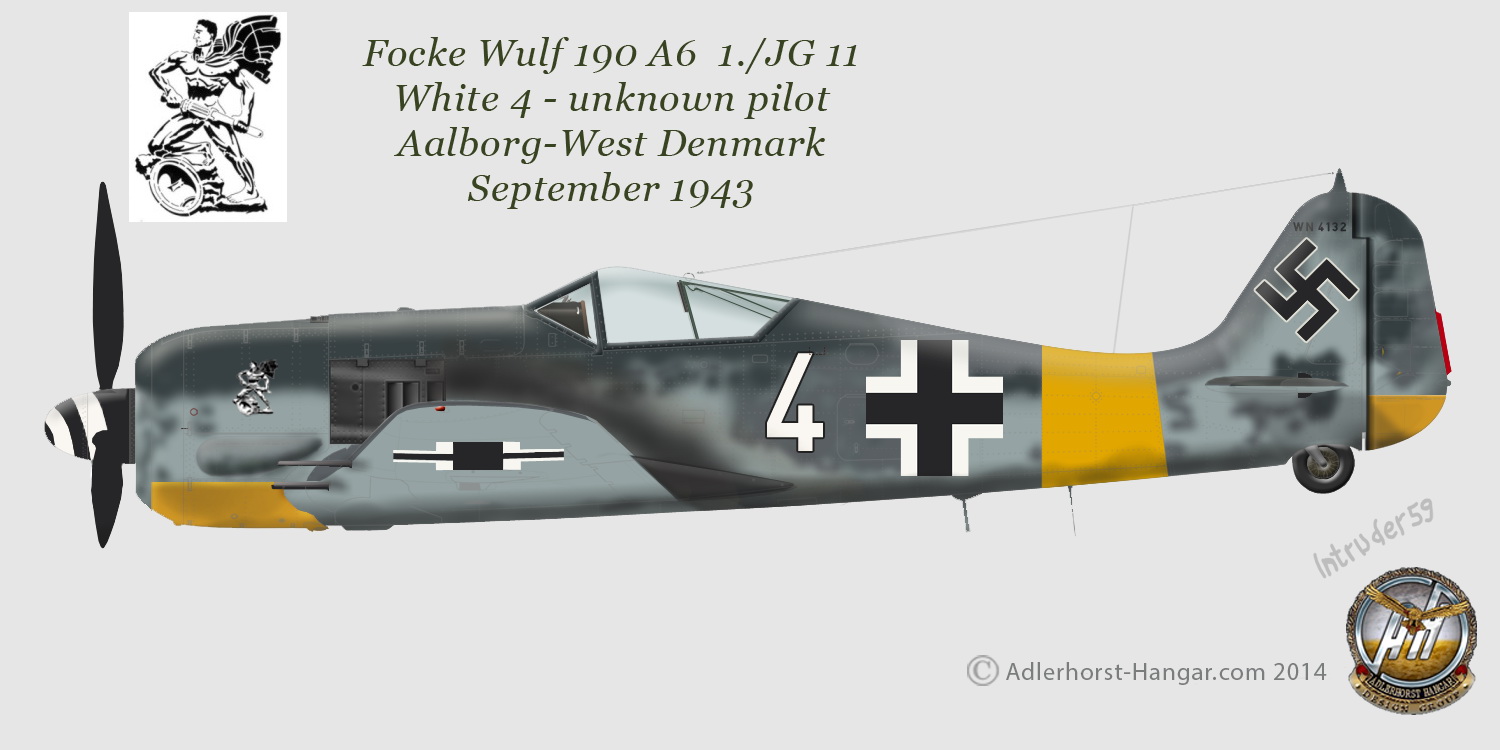 Focke Wulf Fw 190A6 1.JG11 White 4 Aalborg West Denmark Sep 1943-0A