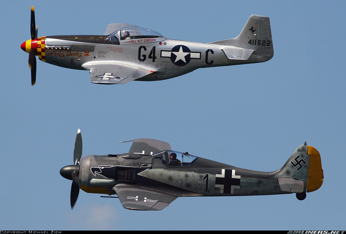 The Focke-Wulf Fw 190 Würger (English: Shrike) named after a bird is a German single-seat, single-engine fighter aircraft designed by Kurt Tank in the late 1930s and widely used during World War II. Along with its well-known counterpart, the Messerschmitt Bf 109, the Fw 190 became the backbone of the Luftwaffe's Jagdwaffe (Fighter Force). The twin-row BMW 801 radial engine that powered most operational versions enabled the Fw 190 to lift larger loads than the Bf 109, allowing its use as a day fighter, fighter-bomber, ground-attack aircraft and, to a lesser degree, night fighter.